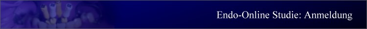 Endo-Online.de ist unter anderem eine endodontische Plattform zur Extraktion von Studiendaten. Hiermit willige ich der anonymisierten statistischen Auswertung meiner Daten und Therapieangaben zu. Die Auswertung und Verwaltung der Daten wird durch die Studiengruppe Endo-Online übernommen, welche sich 2x jährlich in einer offenen Sitzung konstituiert. Jedes Endo-Online.de-Mitglied oder Mitglied einer Studiengruppe (bei einzelstudienextraktionen) kann an diesen Treffen teilnehmen. Die Termine sind der Endo-Online.de-Startseite oder der Endo-Online.de-Facebookseite zu entnehmen.